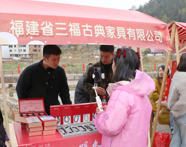 正在市集的浩繁展位中,福建省三福古典家具无限公司的喷鼻道、手串、木雕等产物吸引了从播们的留意。该公司前身为仙逛县三福工艺厂,目前从营高端红木艺术家具品牌,涵括海南黄花梨、越南黄花梨、印度小叶紫檀、老挝大红酸枝等珍贵红木艺术家具系列。